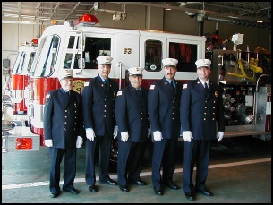 We respond from our homes to Fire Headquarters where we man two engines, one 105' Aerial Ladder, a Heavy Rescue Vehicle and an quick response Attack Unit.