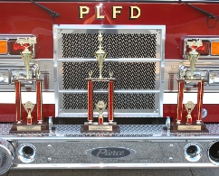 Members of the PLFD participated in the Wanaque FD 100th anniversary parade. The men cleaned the engines, pressed their Class A uniforms, and entered both Engine 53 (L) and Ladder 52 ( R) in the contest. As a result of their diligence and appearance,
